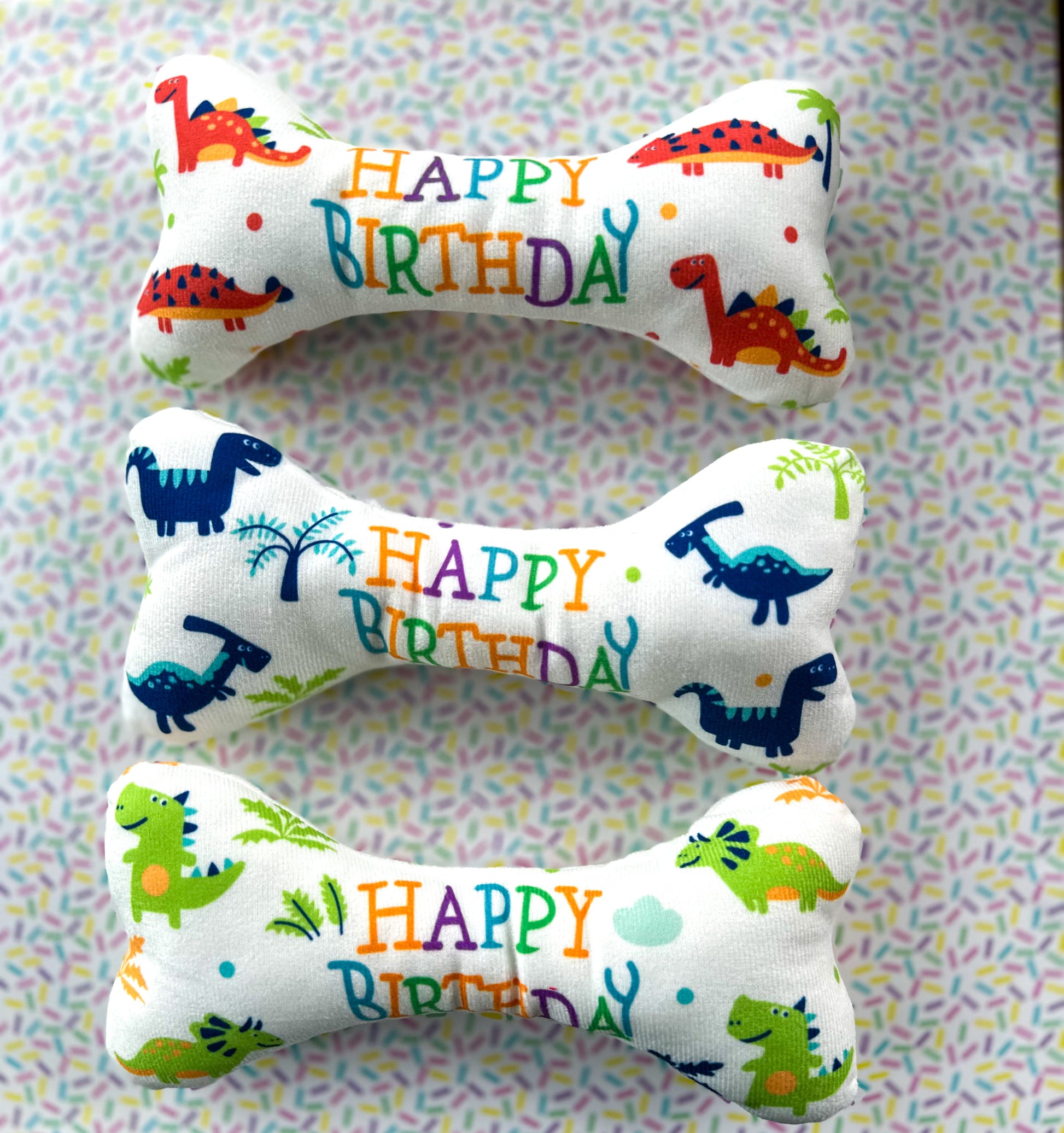 Celebrate your pup’s big day with this roar-some Dino Birthday Bone plush toy! Covered in colorful dinos and cheerful “Happy Birthday” lettering, it’s the ultimate gift for prehistoric party animals.