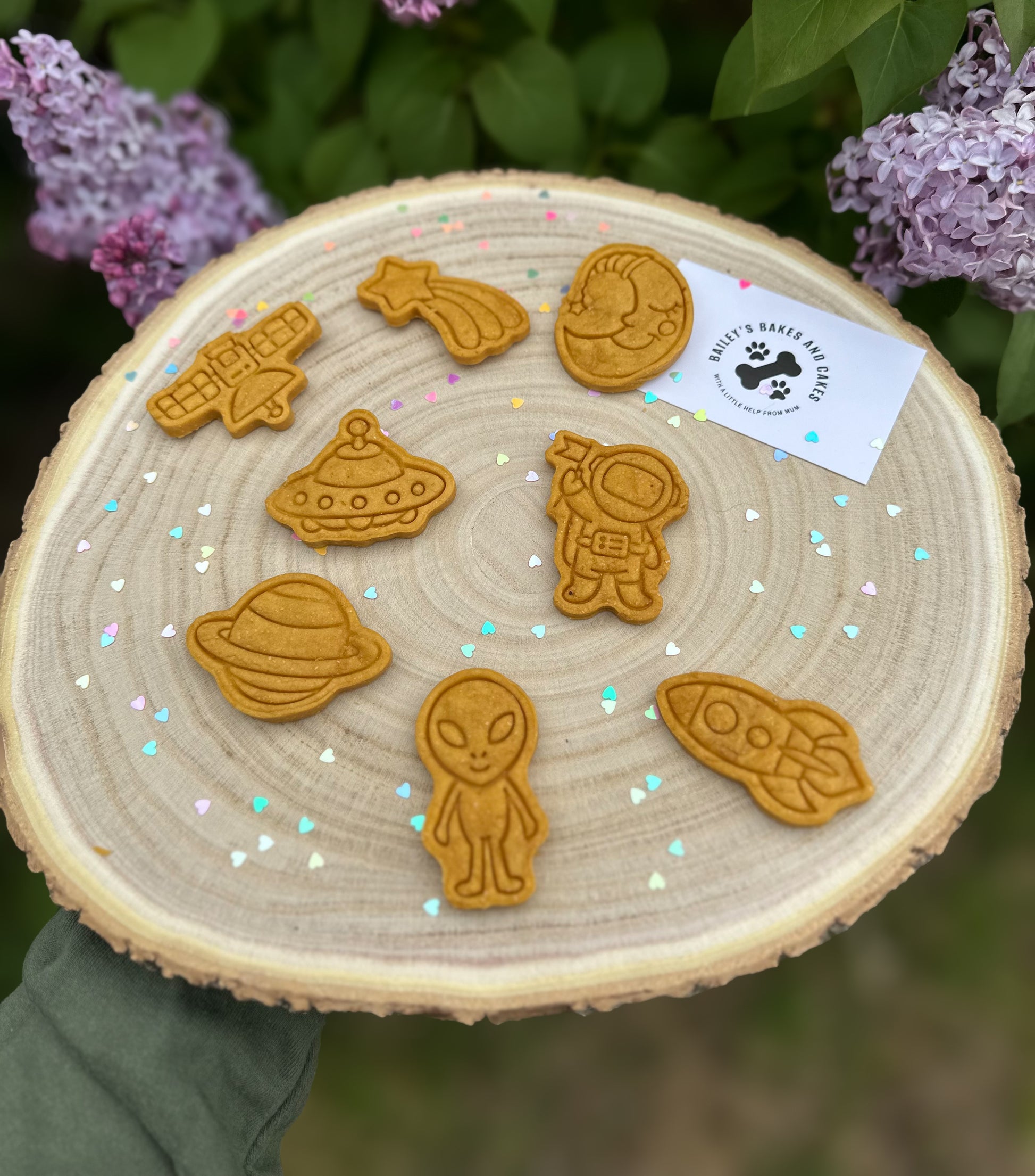 Blast off into a universe of flavour with our out-of-this-world space-themed dog treats! Crafted with love and care, each treat is designed to make your pup feel like a star. Made from all-natural, healthy ingredients, our treats are perfect for dogs of all sizes and ages.