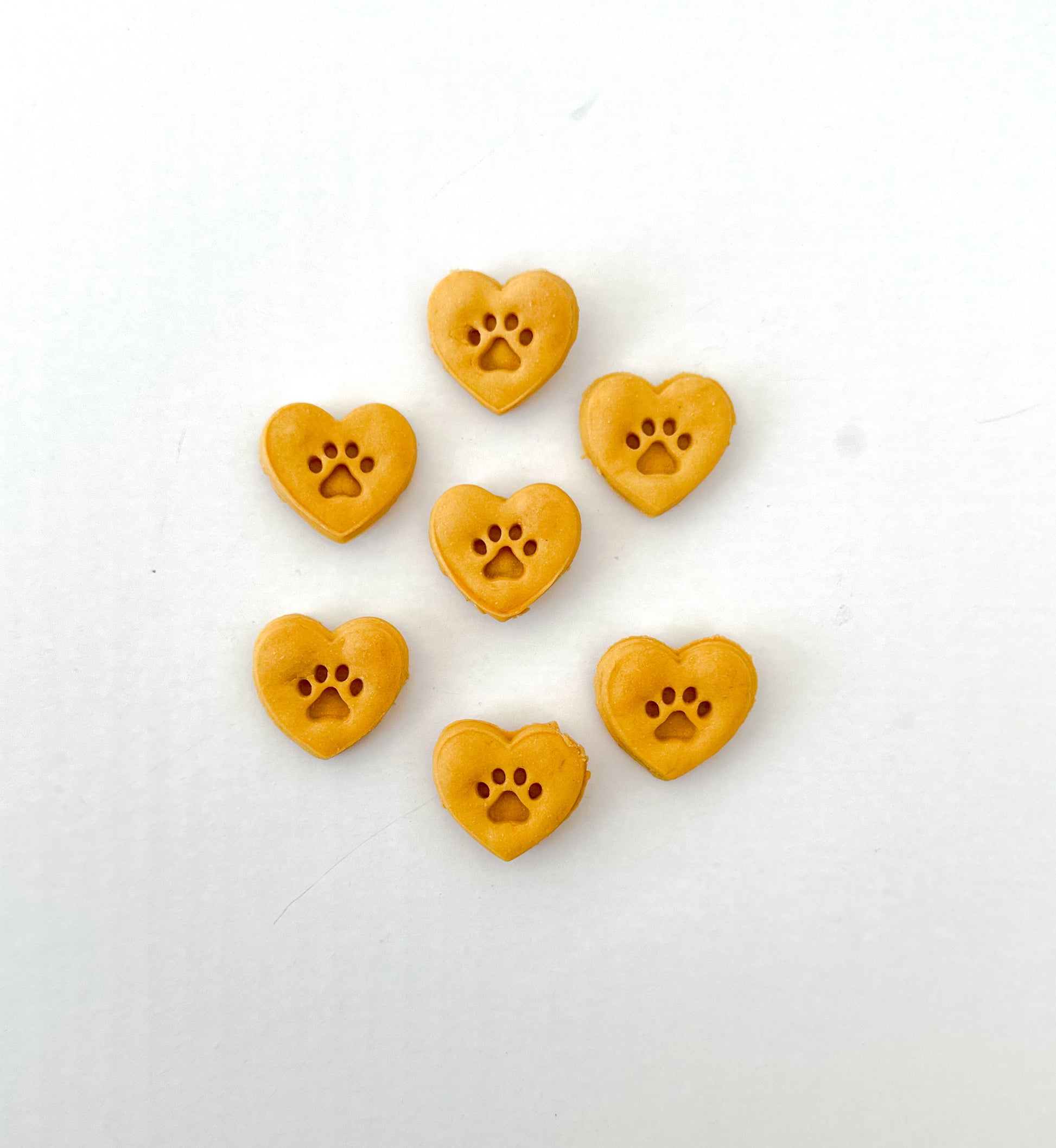 Show your furry friend just how much you care with these adorable heart-shaped biscuits stamped with a tiny paw print. Made with wholesome, natural ingredients, these crunchy treats are as healthy as they are cute. Perfect for training, rewarding good behaviour, or simply sharing the love, Paws & love bites will make tails wag and hearts melt!