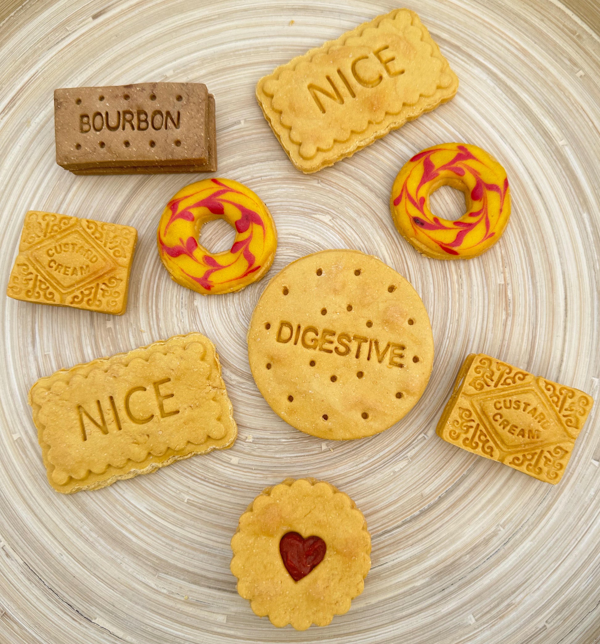 Afternoon tea just got paws-itively perfect! These handmade dog biscuits are inspired by iconic British tea-time classics — from Bourbons and Custard Creams to Jammie Dodgers and Digestives — reimagined in dog-friendly form.